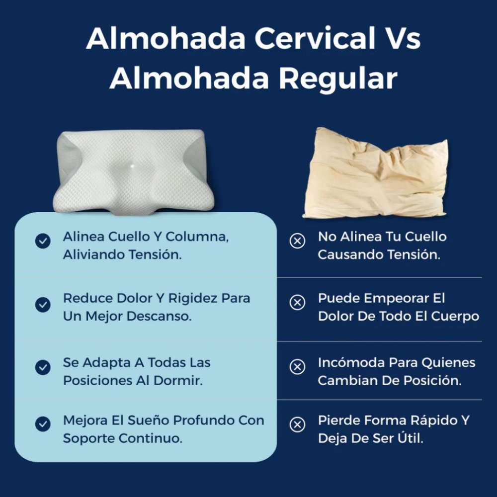 Las almohadas tradicionales suelen ser planas y no respetan la curvatura natural del cuello, lo que puede provocar tensión y dolor.